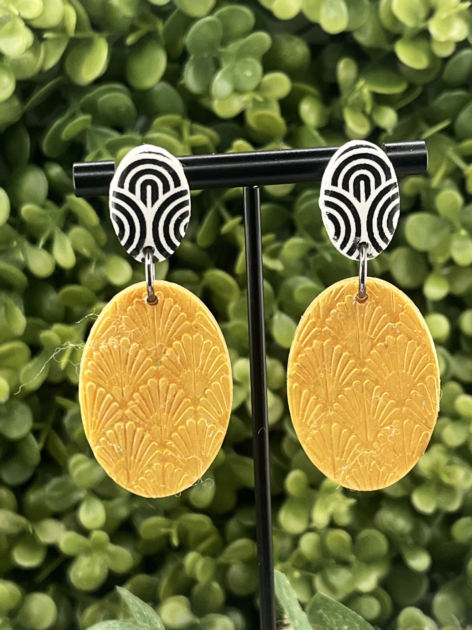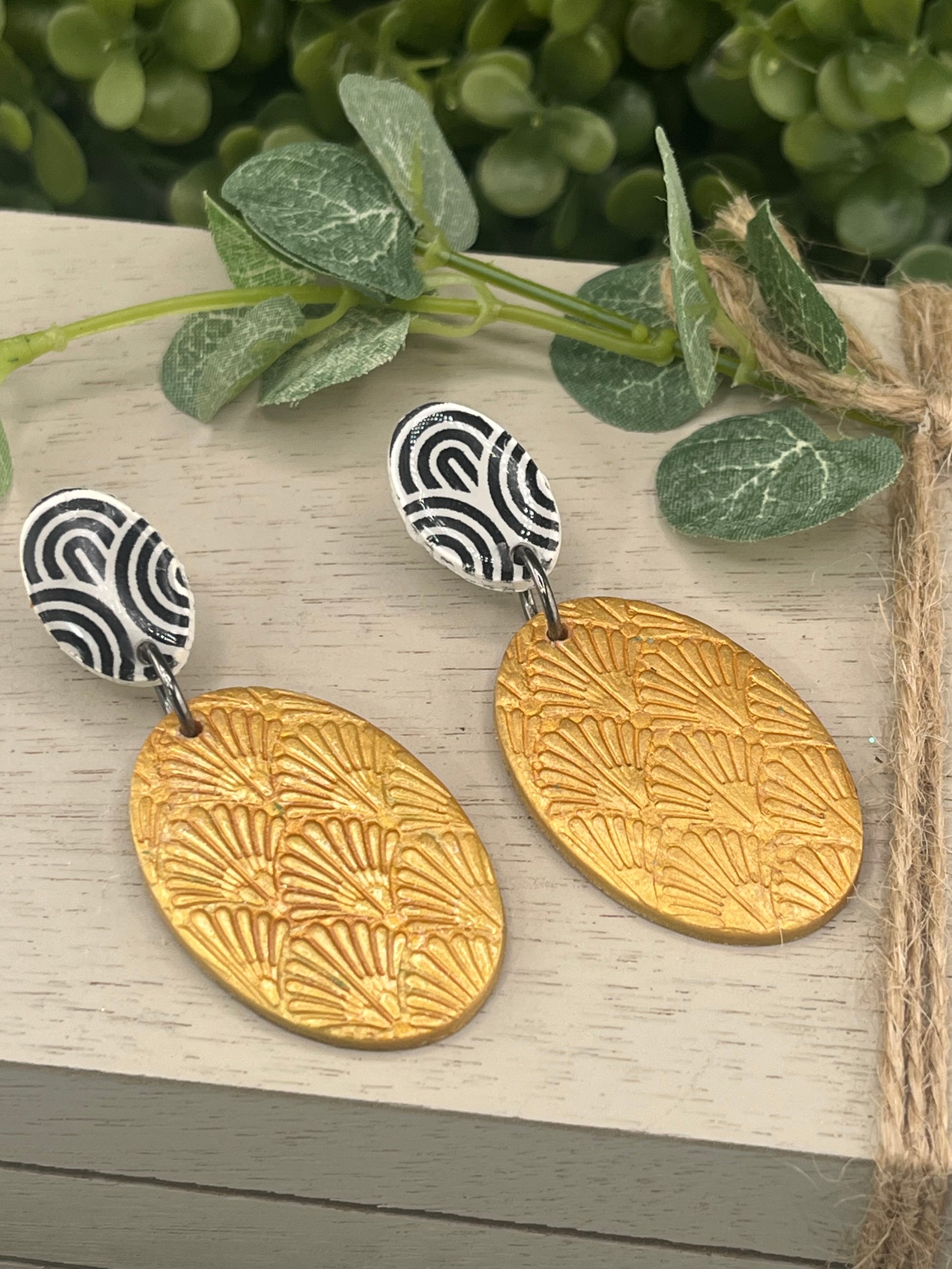 Add a touch of vintage charm to your style with our Embossed Art Deco earrings. Featuring unique embossed designs and accented with black swirl studs, these earrings are a statement piece for any outfit. Plus, enjoy free shipping and a gift box with every purchase.