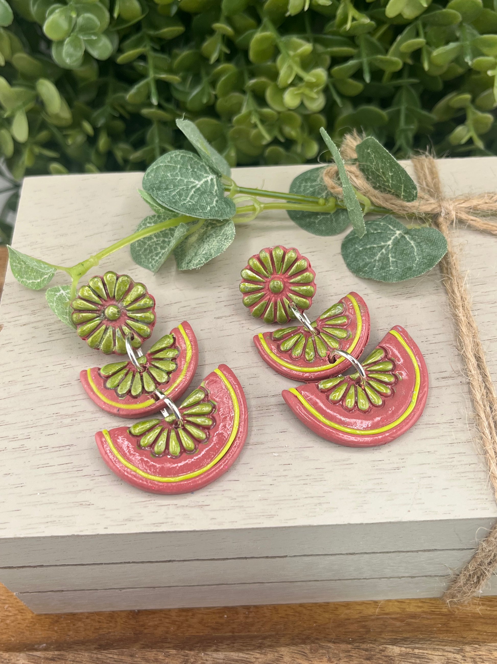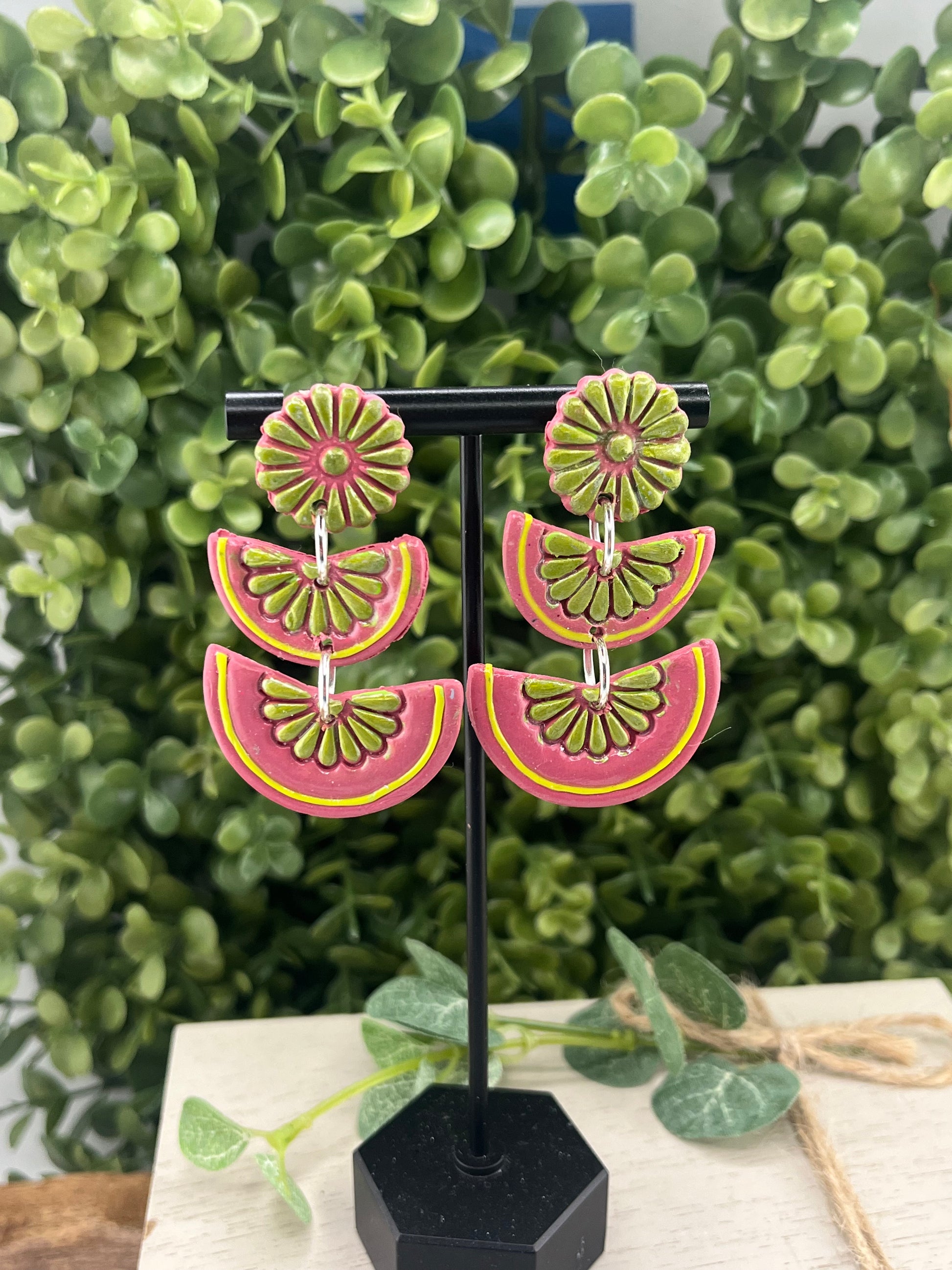 Brighten your style with these playful Flor De Barro Tile Design Earrings! Featuring vibrant rose pink and green dangles inspired by traditional tile artistry, these statement pieces add a pop of color to any outfit. Each pair comes lovingly gift boxed and ships free to your door – the perfect treat for yourself or a colorful surprise for someone special!
