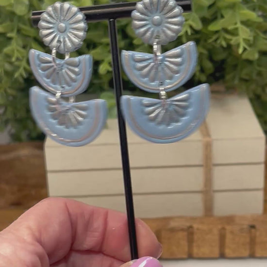 Brighten your style with these playful Flor De Barro Tile Design Earrings! Featuring soft blue and silver dangles inspired by traditional tile artistry, these statement pieces add a pop of color to any outfit. Each pair comes lovingly gift boxed and ships free to your door – the perfect treat for yourself or a colorful surprise for someone special!