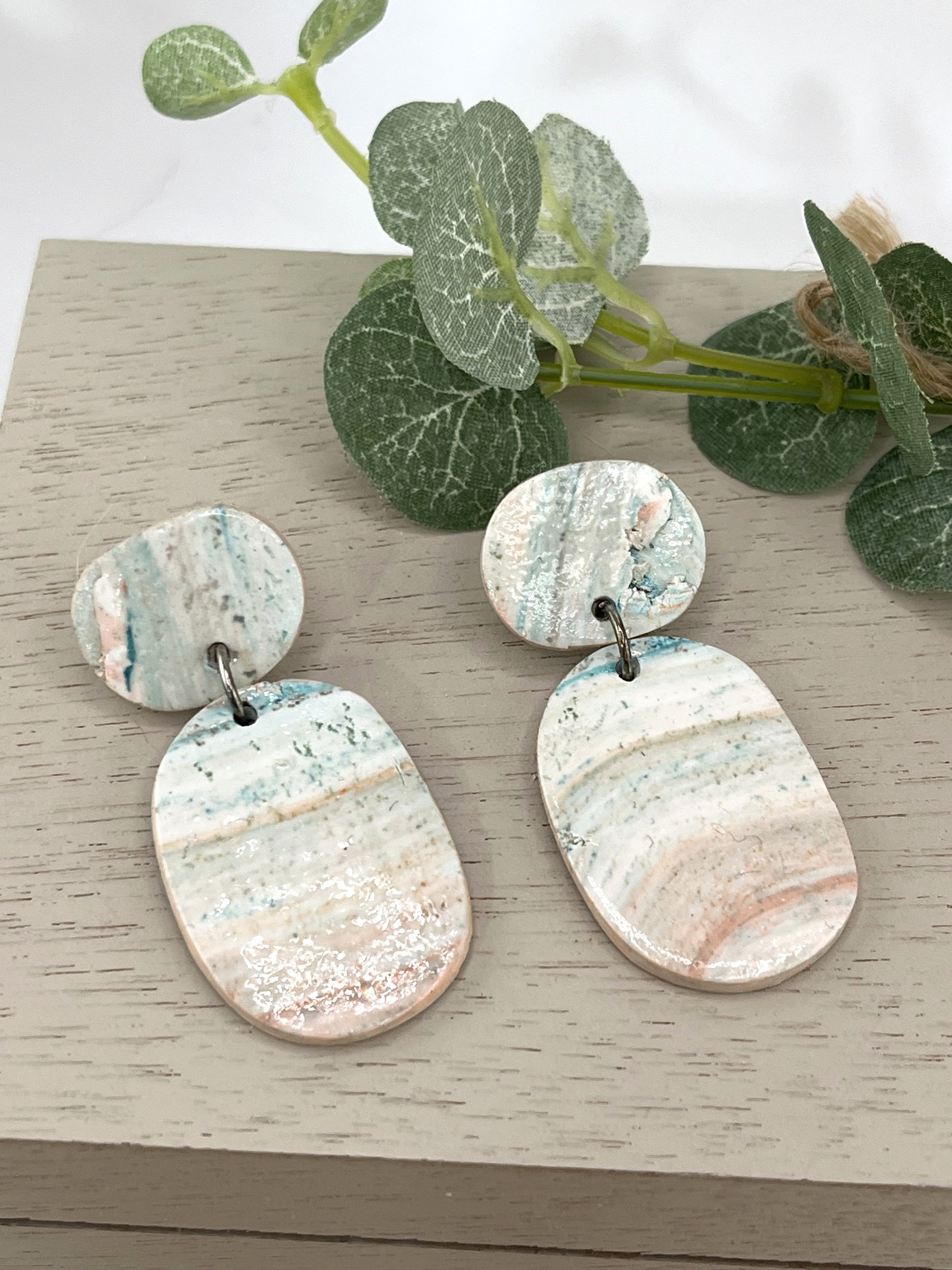 I mix the colors by hand, shape the clay, sand and assemble the earrings resulting in a unique pair of earrings.